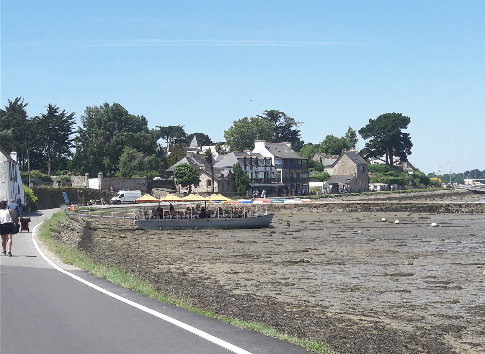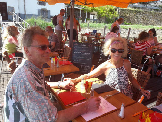 visite de l'île aux moines, la plus grande des îles du golfe; nous y avons déjeuné dans un restaurant sur une barge, avec une belle vue et un patron sympa.
